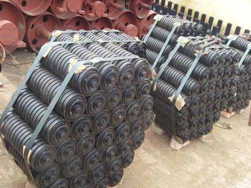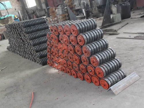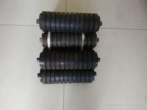 緩沖托輥安裝在輸送機(jī)受料段的下方,減小落料時(shí)物料對(duì)輸送帶的沖擊,以廷長(zhǎng)輸送帶的使用壽命.緩沖托輥的間距一般100-600毫米。