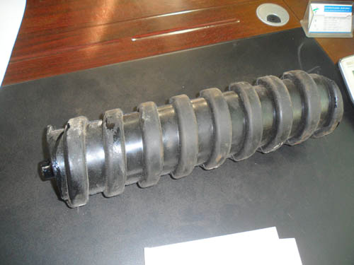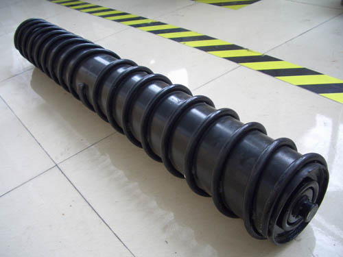 螺旋橡膠托輥是引進(jìn)國外先進(jìn)技術(shù),針對化工行業(yè)固體粘濕物料輸送時存在嚴(yán)重問題開發(fā)研制的科技成果.我公司專業(yè)從事皮帶機(jī)螺旋橡膠托輥的制造和銷售,該產(chǎn)品在國內(nèi)享有千家的用戶,還遠(yuǎn)銷東南亞各國。該產(chǎn)品的問世,從根本上解決了帶式輸送機(jī)普遍存在的腐蝕,粘輥、膠帶跑偏和撕裂等嚴(yán)重問題。具有結(jié)構(gòu)新穎、安裝維修方便、自定中心輸送平穩(wěn)、不粘輥、噪音小,能耗低及延長膠帶使用壽命特點(diǎn)。填補(bǔ)了國內(nèi)空白,并被多家部屬化工設(shè)計院納入通用設(shè)計規(guī)范。